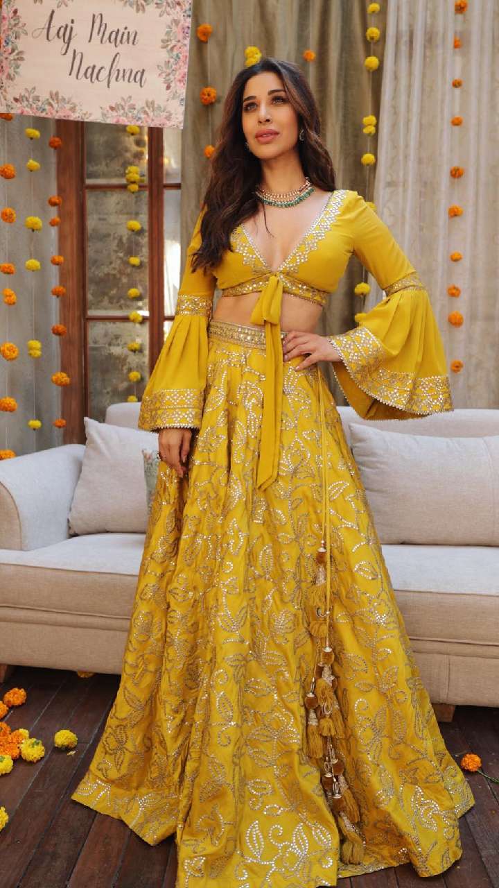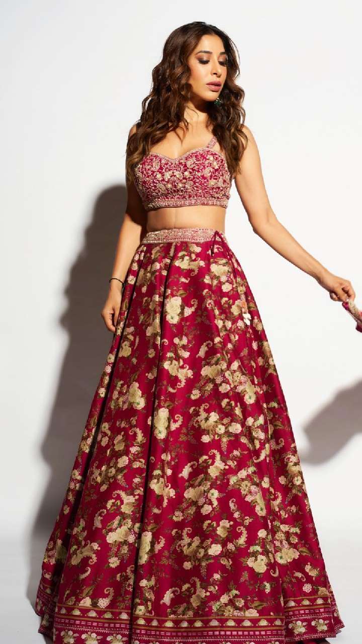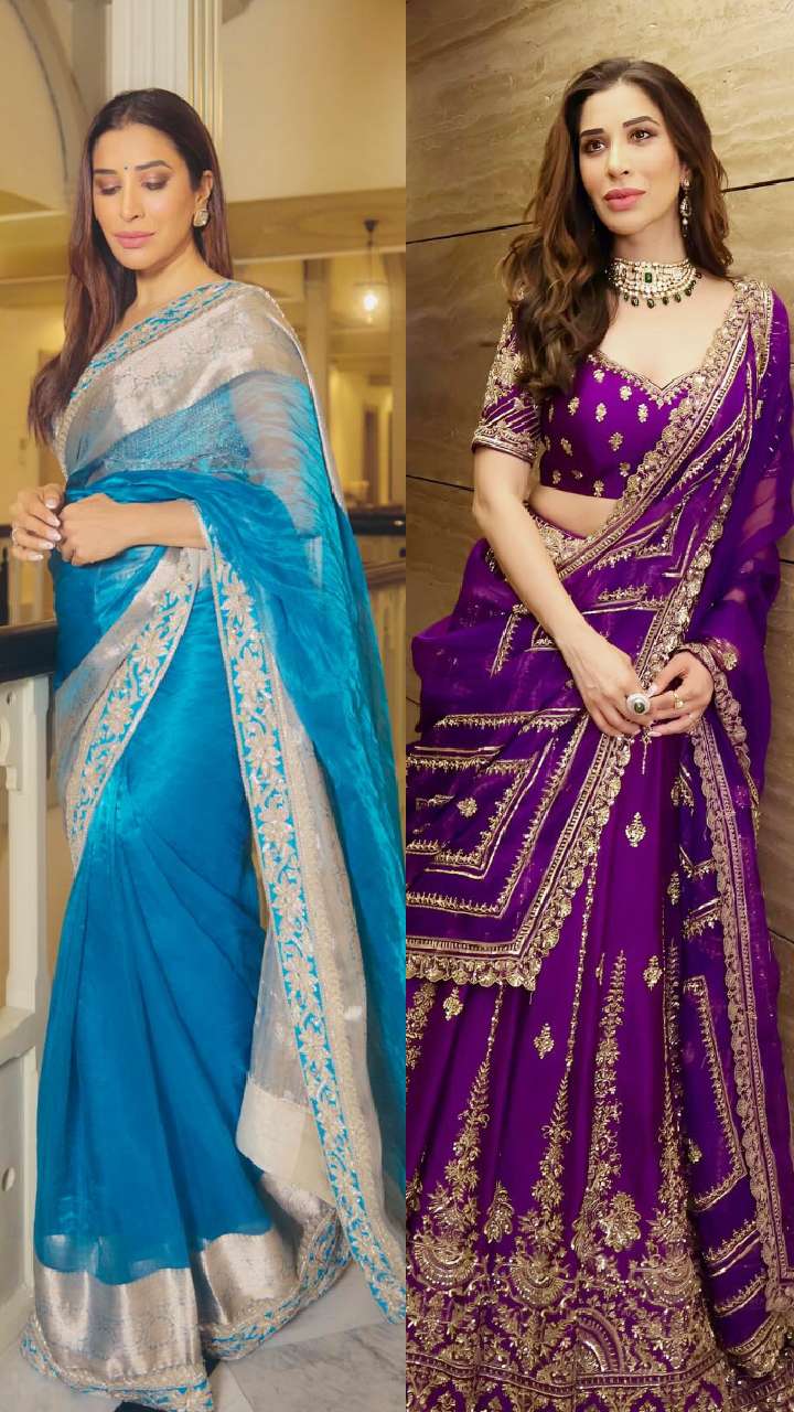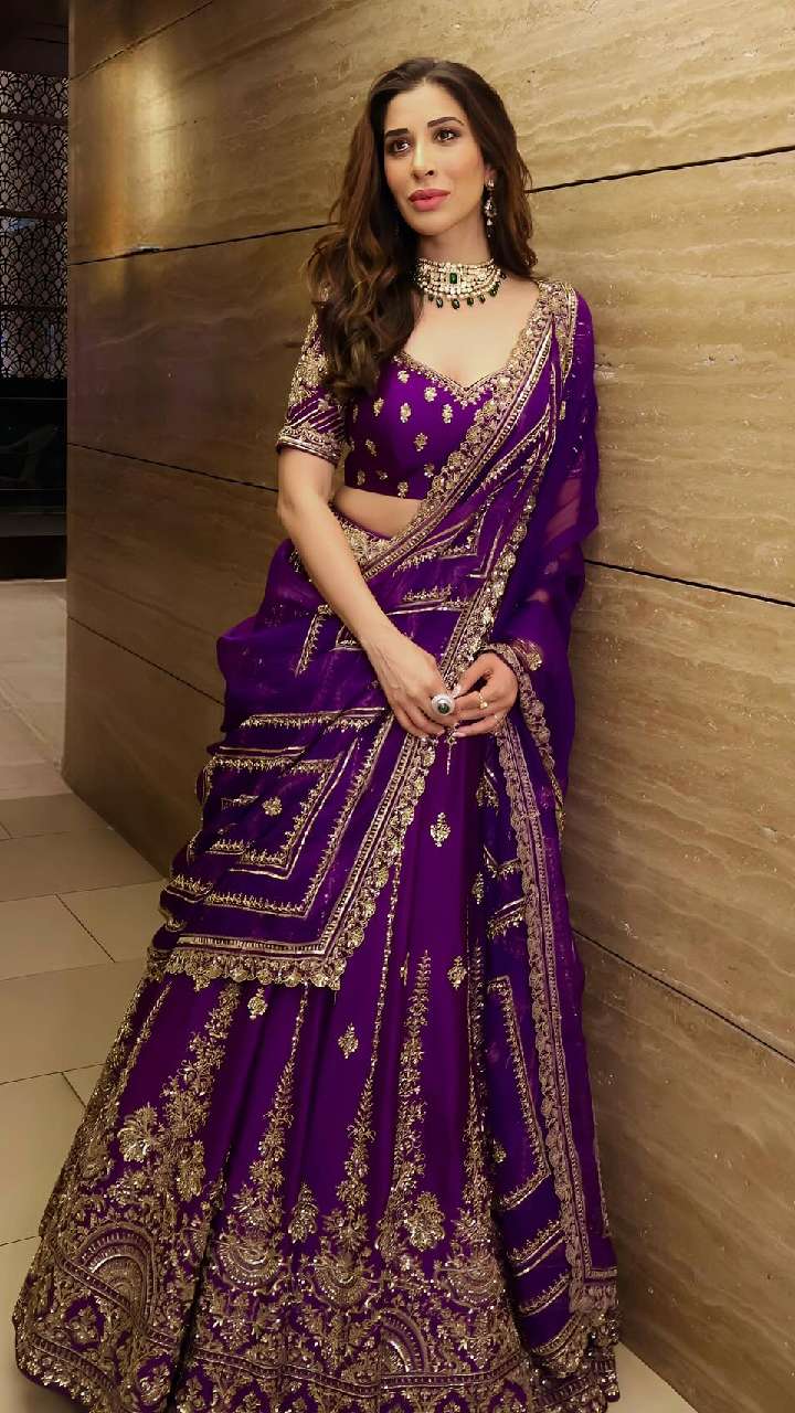 आप इस करवाचौथ अभिनेत्री के जैसे पर्पल कलर गोल्डन वर्क लहंगे से अपने लुक में चार चांद लगा सकती हैं। ये लहंगा आपके लुक में जान डाल देगा।