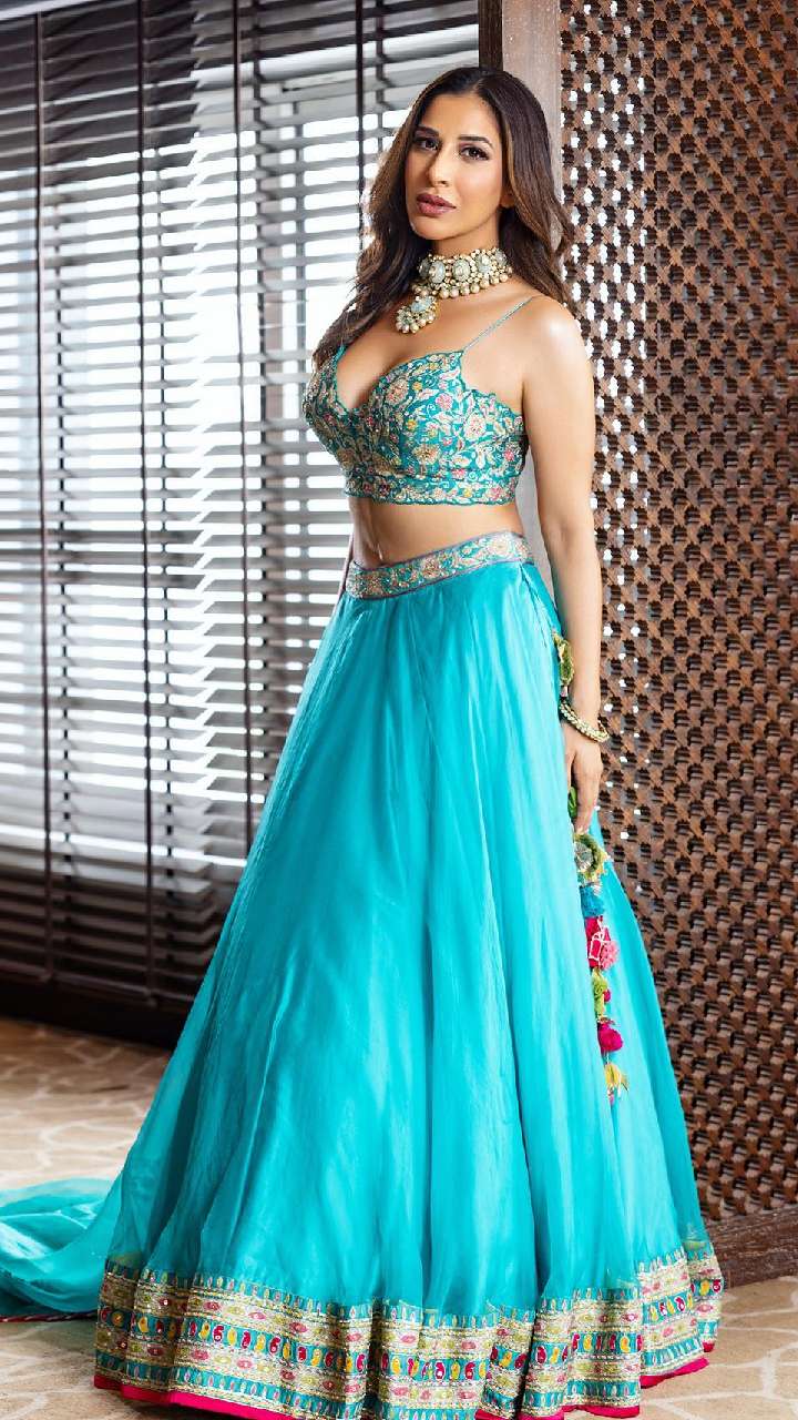 त्योहारों पर ऐसे खिले खिले रंग बेहद गॉर्जियस लुक देते हैं। ऐसे में आप भी डीवा की तरह स्काई ब्लू एम्ब्रॉयडरी लहंगा नूडल स्ट्रैप वर्क वाली चोली से खुद को प्रीटी लुक दे सकती हैं।