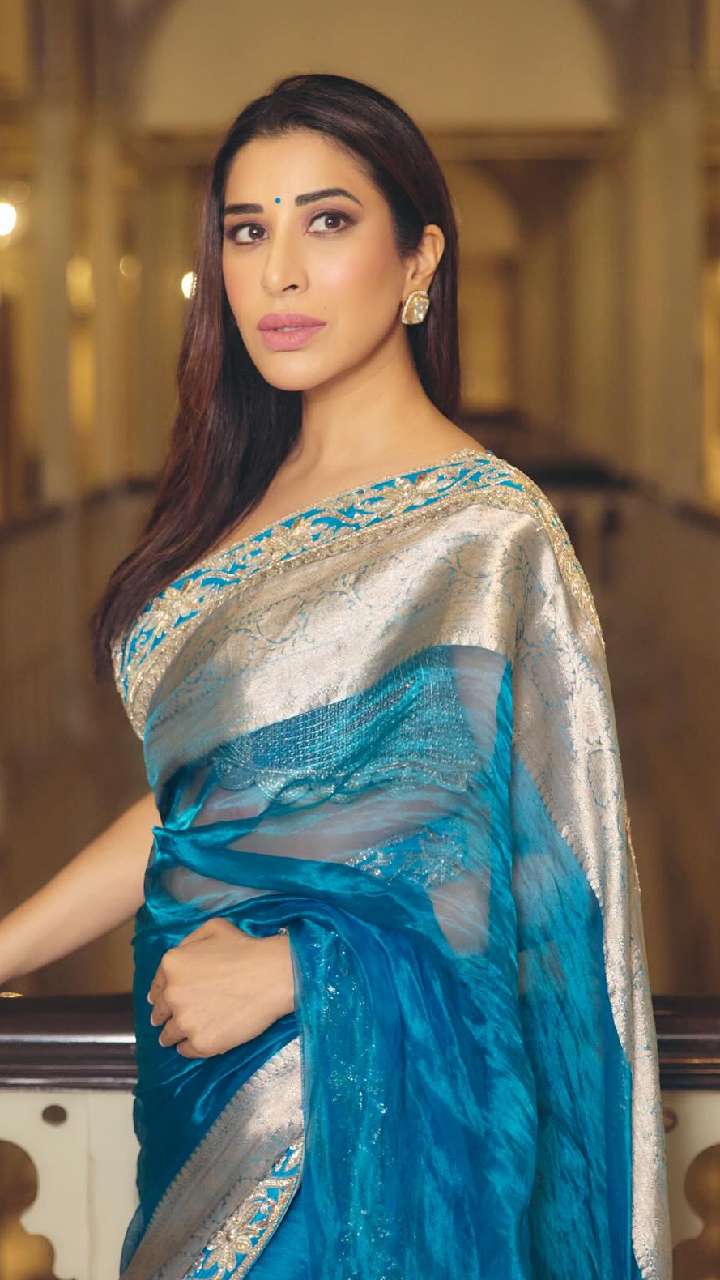 अभिनेत्री ब्लू कलर की सिल्क जरी बॉर्डर साड़ी में कयामत ढहा रही हैं। उनका ये लुक करवाचौथ के लिए एकदम बेस्ट रहेगा। सिंपल साड़ी में भी आप ब्यूटीफुल दिखेंगी।