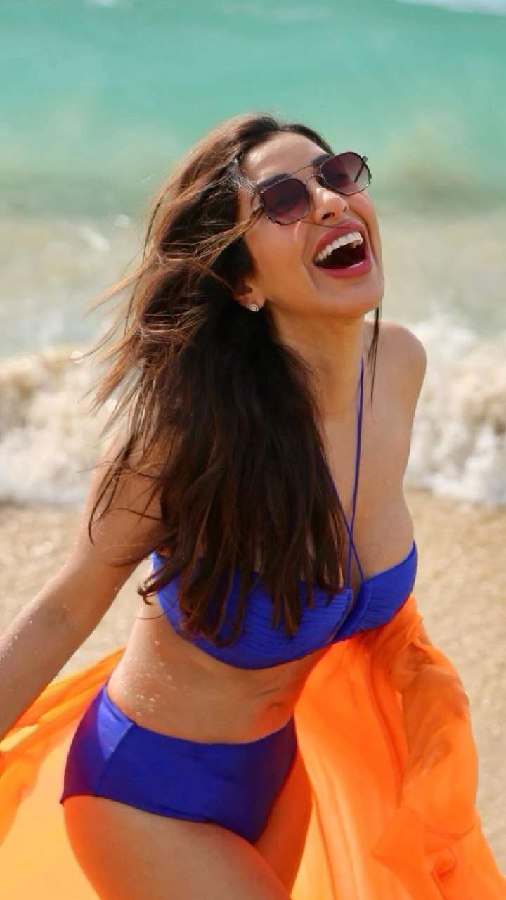 इस ब्लैक कलर की बिकिनी में एक्ट्रेस समुंदर किनारे खड़े होकर अपना कर्वी फिगर फ्लॉन्ट करते नजर आ रही हैं। इसके साथ उनका कंट्रास्ट ऑरेंज स्कार्फ स्टाइलिश लुक दे रहा है।