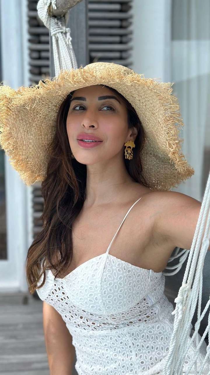 एक्ट्रेस का ये व्हाइट कलर शार्ट ड्रेस लुक बीच वेकेशन के लिए परफेक्ट रहेगा।