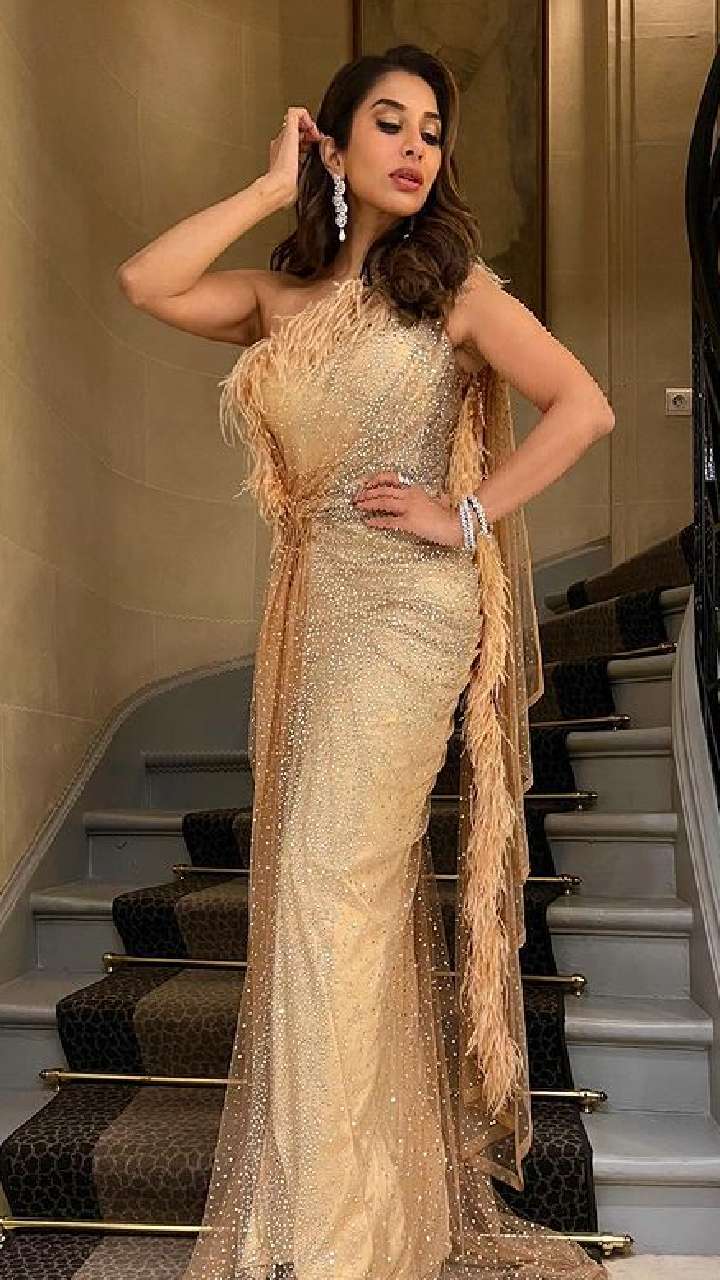पीच कलर की इस मरमेड स्टाइल ड्रेस में सोफी चौधरी अपने फैंस का दिल जीत रहीं हैं।