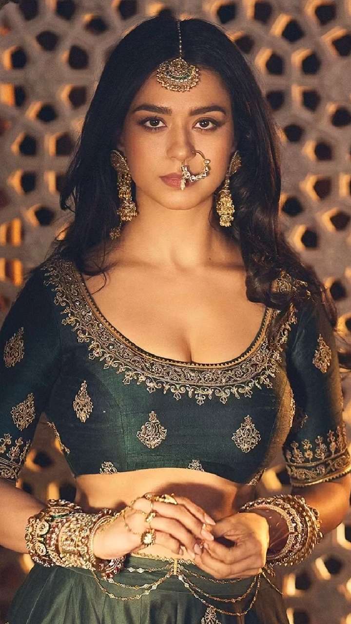 एक्ट्रेस के लंबे चेन डेंगल इयररिंग्स देखने में बेहद एलिगेंट लग रहे है। आप इन इयररिंग को लहंगे पर पहनकर अपने लुक में चार-चांद लगा सकती हैं।