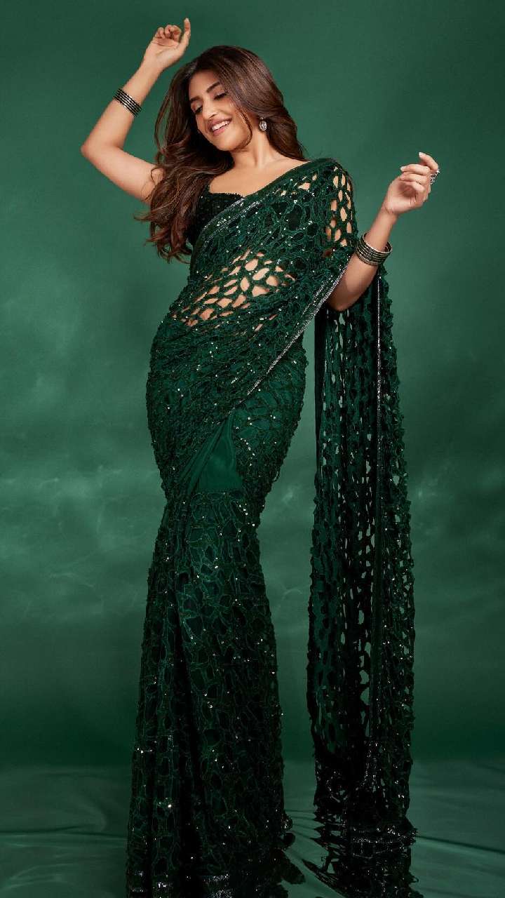 अगर आप प्लेन और सिंपल साड़ी को कैरी कर करना चाहती हैं तो आप श्रीलीला के इस साड़ी लुक को रिक्रिएट कर सकती हैं।
