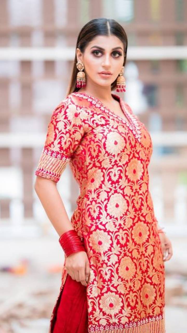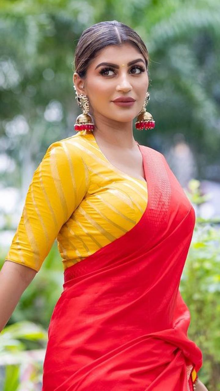 याशिका आनंद रेड कलर की साड़ी मे बेहद खूबसूरत लग रही हैं।