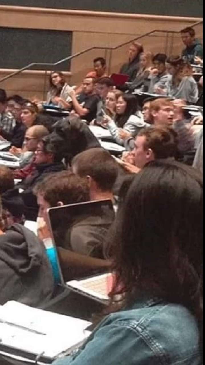 इस तस्वीर में आपको एक क्लासरूम और उसमें बच्चे बैठे नजर आ रहे होंगे। इन्हीं बच्चों के बीच एक कुत्ता भी बैठा हुआ है।