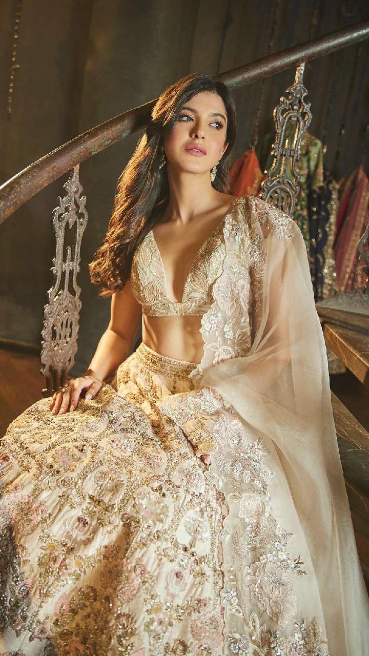 शनाया कपूर इस पीच कलर के हेवी वर्क लहंगे में एकदम वेडिंग गेस्ट लुक दे रही हैं। एक्ट्रेस ने इसके साथ डीपनैक चोली पेयर की है।
