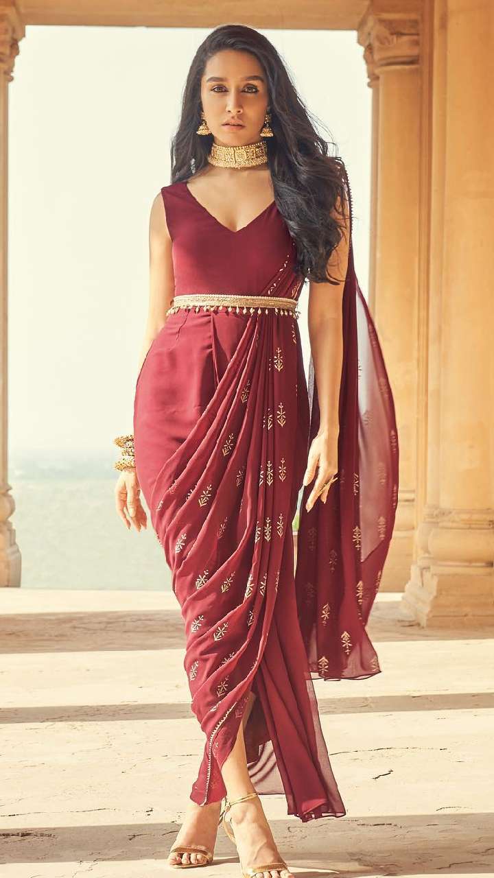 आप फंक्शन में कुछ डिफरेंट ट्राई करने का सोच रही हैं तो इस तरह की इंडो-वेस्टर्न साड़ी स्टाइल कर सकती हैं। इसके साथ डीवा ने प्लेन ब्लाउज और कमरबंध से लुक कंप्लीट किया है।