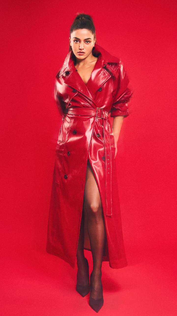 एक्ट्रेस रेड साटिन बॉडीकॉन ड्रेस में बेहद स्टाइलिश और अट्रैक्टिव लग रही हैं। यंग गर्ल्स पर्सनैलिटी को बोल्ड के साथ बॉसी लुक देने के लिए एक्ट्रेस की ड्रेस को स्टाइल कर सकती हैं।