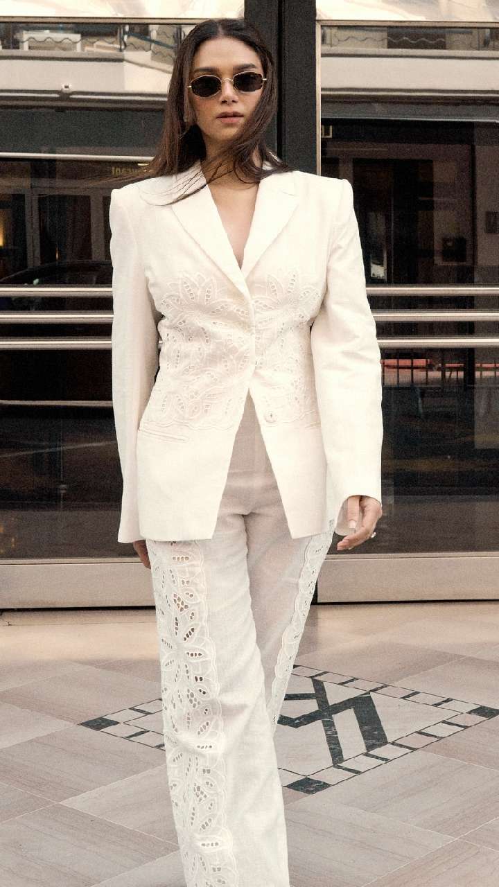 इस व्हाइट फॉर्मल लुक को आप ऑफिस की पार्टी में पहनकर जा सकते हैं। ये आउटफिट महफिल में आपको स्पॉट लाइट बनने का काम करेगा।