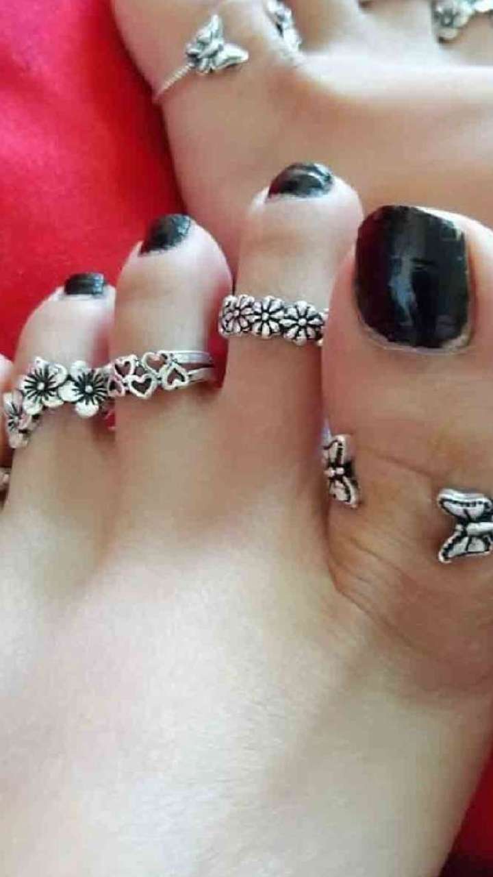 सुहागन सिंपल और डिसेंट लुक लेने के लिए फोटो में दिखाई गई ऐसी डिजाइनर छल्ले वाली बिछिया पहन सकती हैं। अलग-अलग डिजाइन वाली बिछिया पैरों की सभी उंगलियों को अट्रैक्टिव लुक देगी।