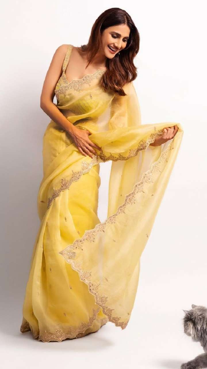 आप सिंपल साड़ी के साथ एक्ट्रेस के डीप वी नेक ब्लाउज को पहनकर फ्लॉन्ट कर सकती हैं। यह डीप वी नेक ब्लाउज देखने में भी हॉट लुक दे रहा है।