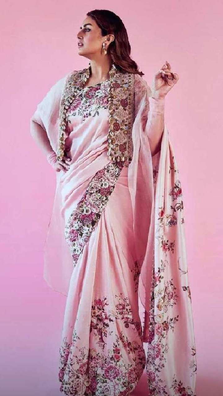 एक्ट्रेस इस साड़ी में काफी खूबसूरत नजर आ रही हैं। प्लस साइज महिलाओं के लिए यह साड़ी बेस्ट ऑप्शन है। वह इसे टाइट बन हेयर स्टाइल के साथ किसी भी फंक्शन में स्टाइल कर सकती हैं।