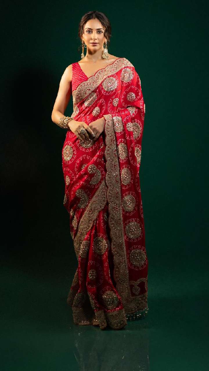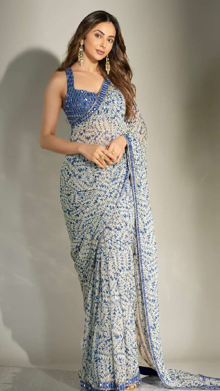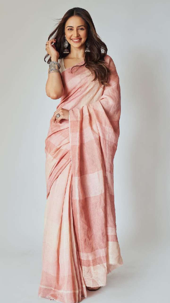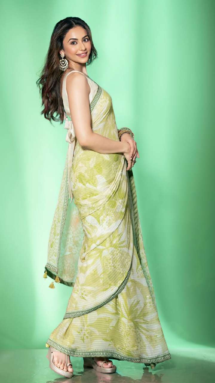 बॉलीवुड की खूबसूरत एक्ट्रेस Rakul Preet Singh के साड़ी लुक्स यंग गर्ल्स के फेवरेट है। अगर आप पार्टी में पतली कमर को फ्लॉन्ट करना चाहती हैं, तो एक्ट्रेस के साड़ी आउटफिट्स को आपके लिए परफेक्ट है।