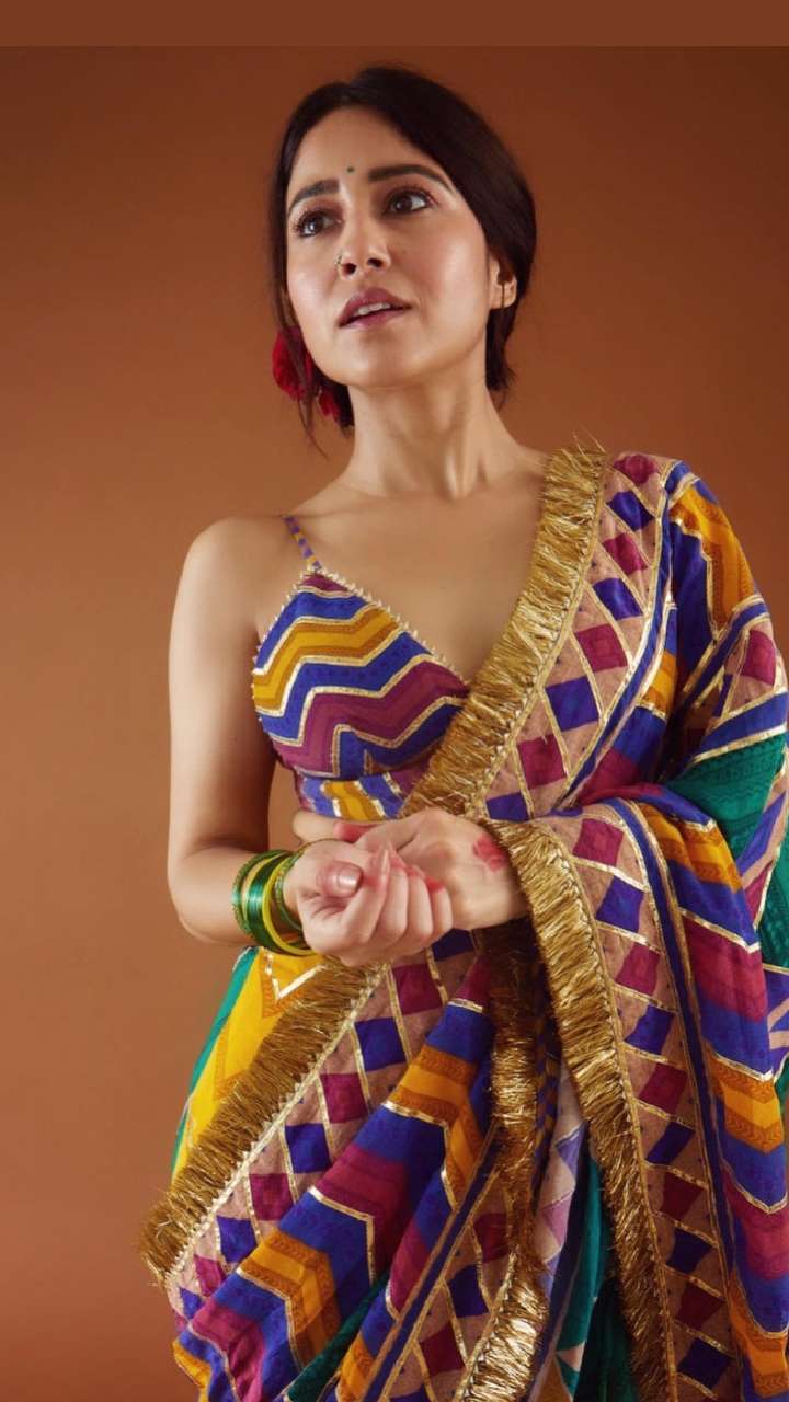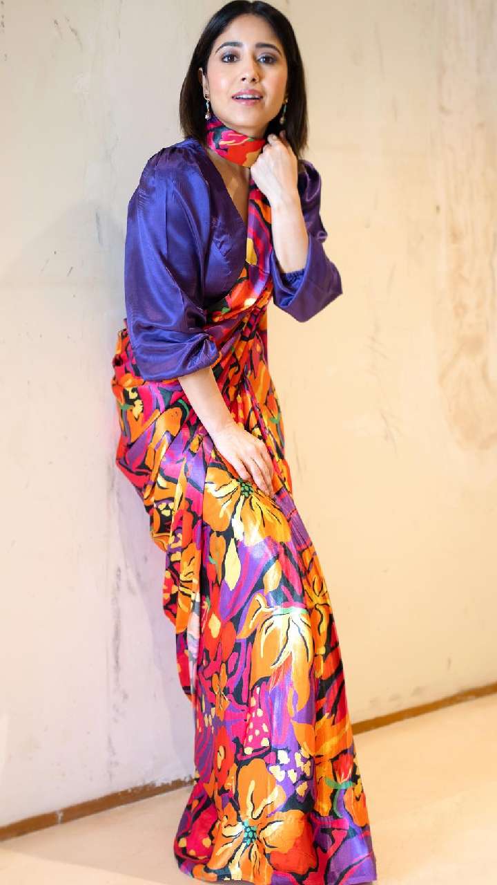 महफिल में हाइलाइट होने के लिए आप डार्क मेकअप के साथ एक्ट्रेस की इस कलरफुल साड़ी को कैरी कर सकती हैं। यह आपको यूनिक और क्लासी लुक देगी।