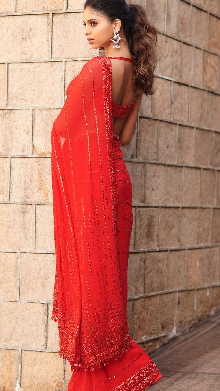 इससे पहले भी सुहाना इस गोल्डन सितारों वाली साड़ी संग स्ट्रैप ब्लाउज में अपना स्टनिंग लुक शेयर कर चुकी हैं।