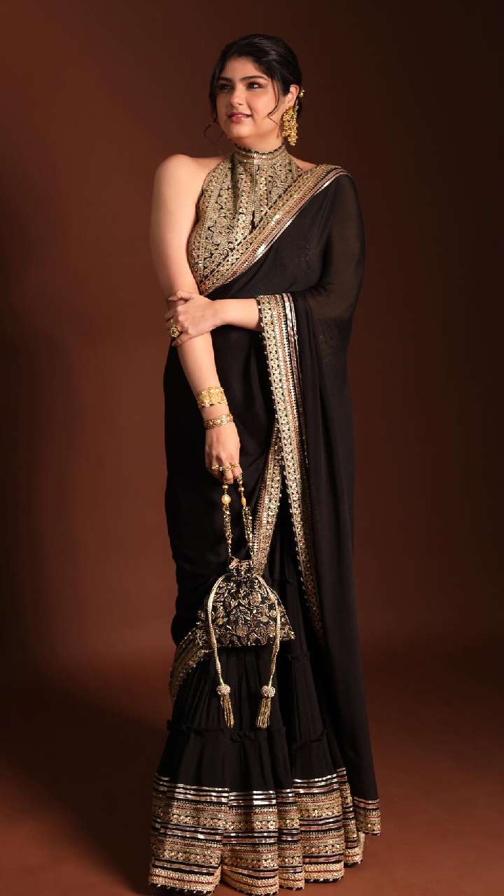 बोनी कपूर की बेटी अंशुला कपूर को आज हर कोई जानता है। इस ब्लैक कलर की साड़ी में अंशुला के इस लुक को आप भी कॉपी कर सकती हैं।