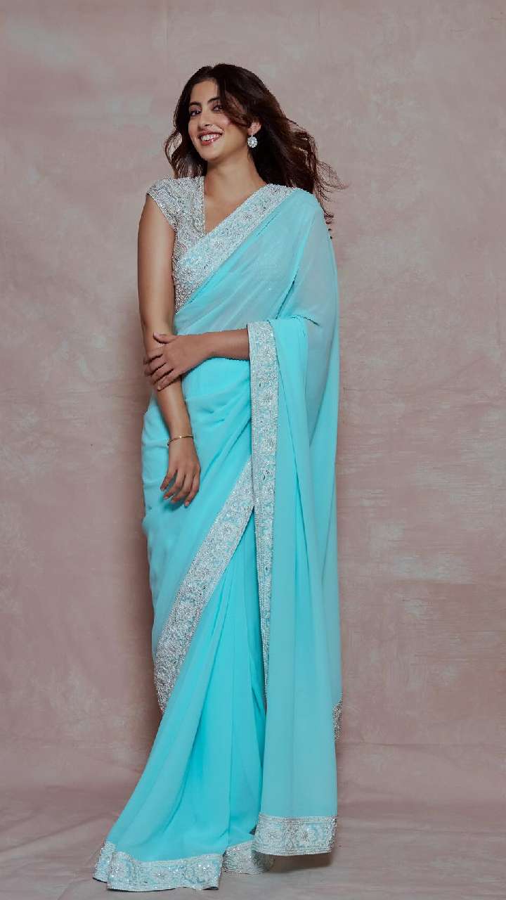 अमिताभ बच्चन की नातिन नव्या नवेली नंदा आज किसी भी परिचय की मोहताज नहीं हैं। नव्या इस स्काइ ब्लू साड़ी में बहुत सुंदर लग रही हैं।