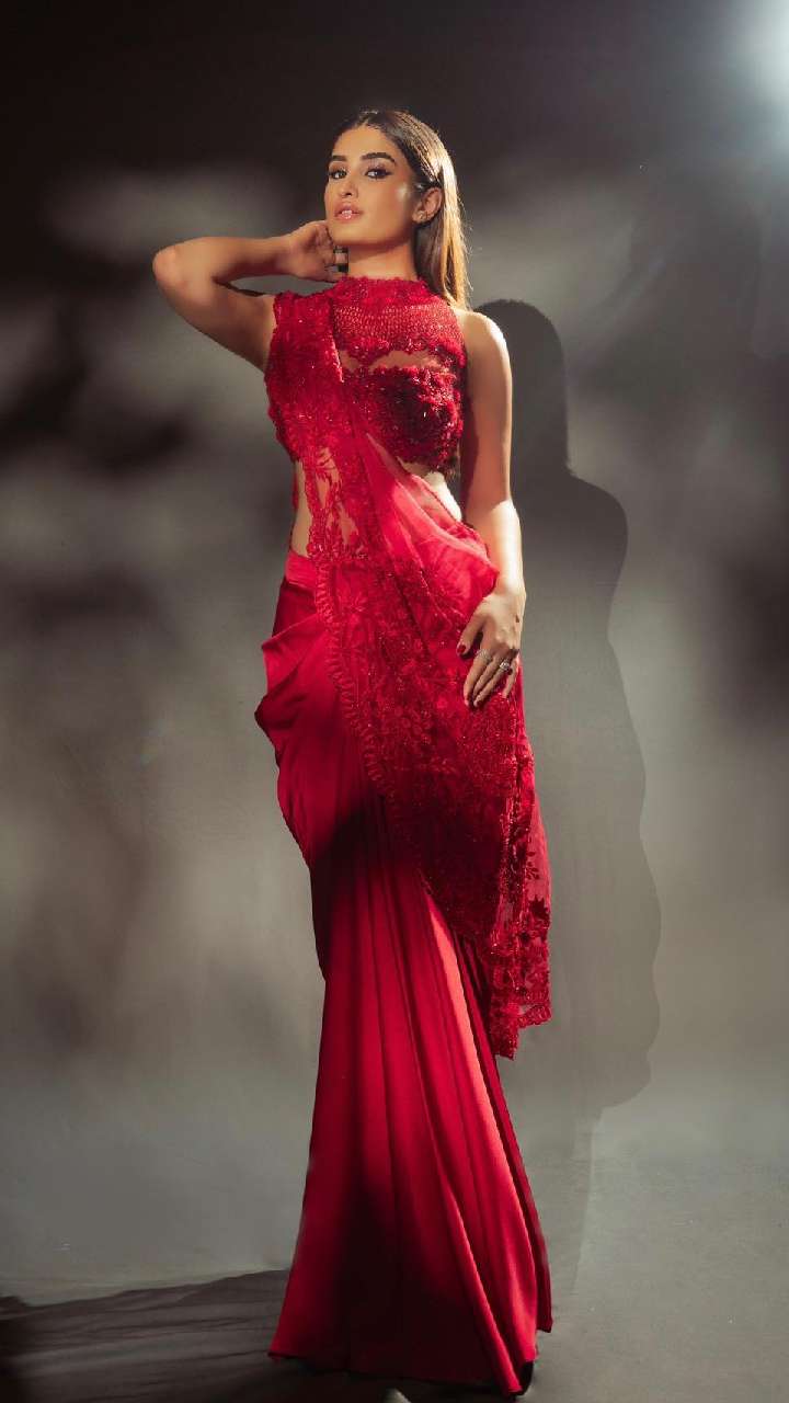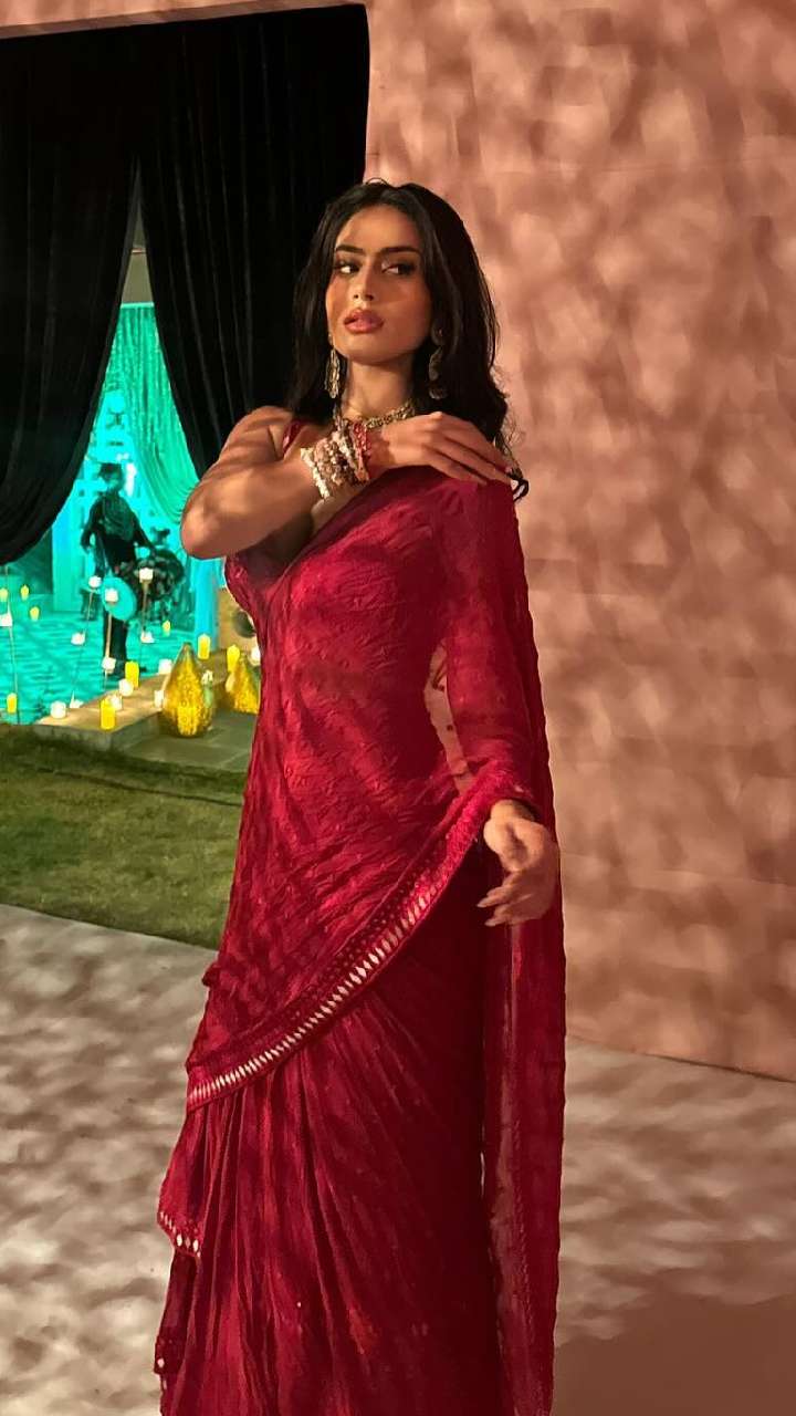 राशा थडानी का हर लुक काफी शानदार होता है। रेड कलर की नेट साड़ी में राशा का लुक बहुत प्यारा लग रहा है।