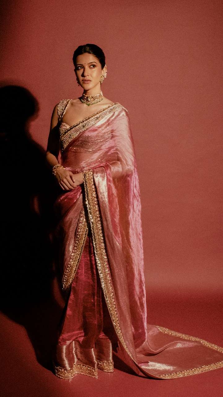 टिश्यू साड़ी फिलहाल काफी ज्यादा ट्रेंड में चल रही हैं। आप भी शनाया कपूर के इस लुक को कॉपी कर सकती हैं।