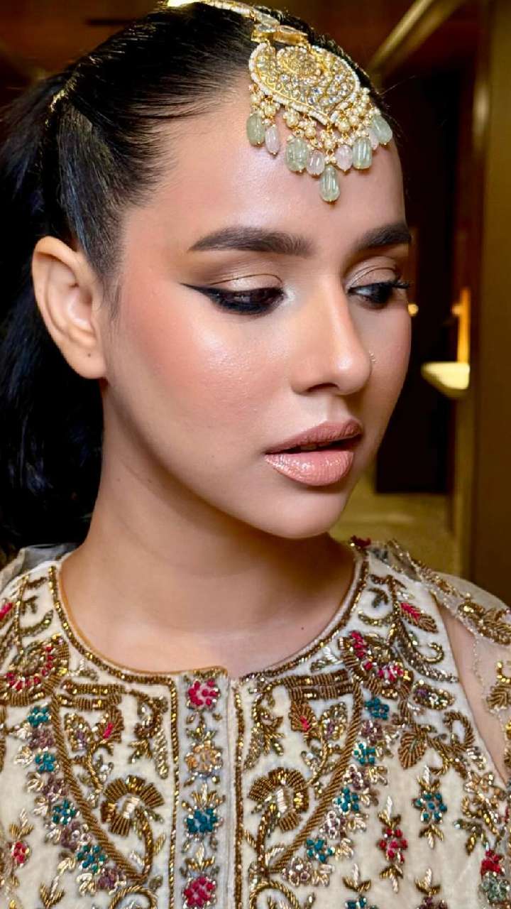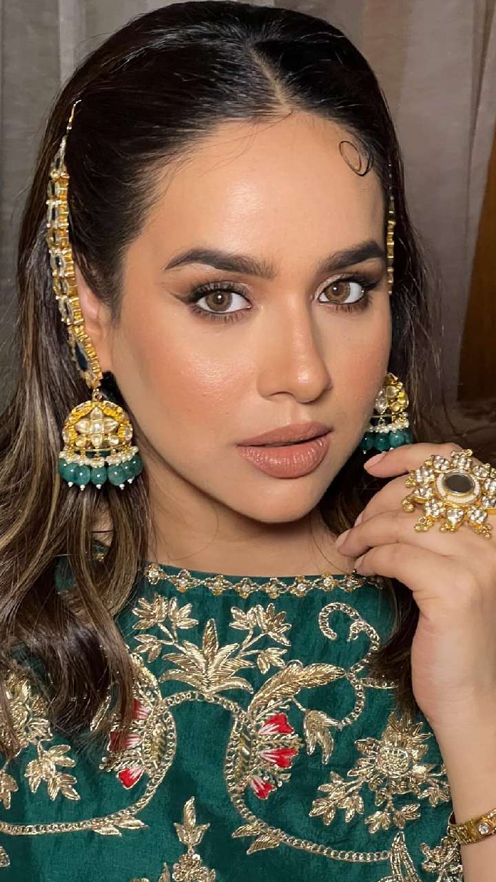 सुनंदा ने लाइट ब्राउन आई शैडो के साथ आंखों को ग्लिटरी लुक दिया है, जो उन्हें लोहड़ी पर रॉयल लुक देगा।