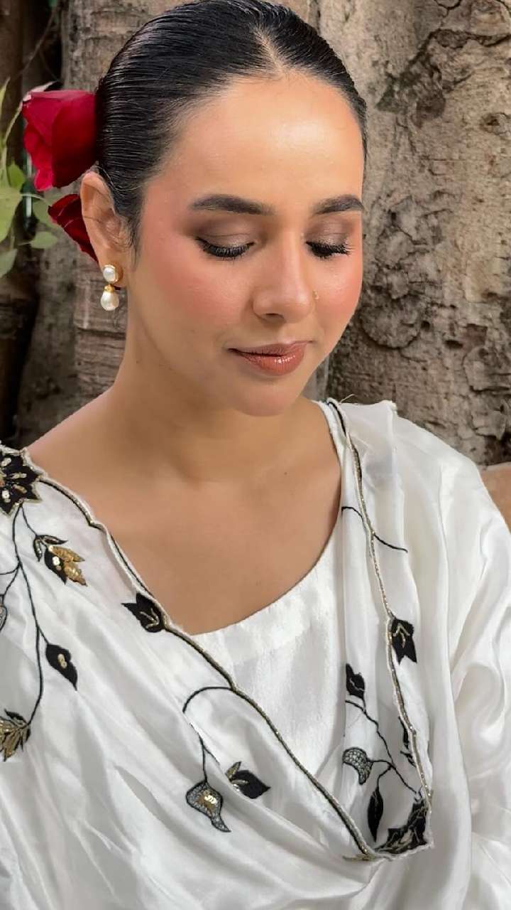 इस लुक में एक्ट्रेस खूबसूरत लग रही हैं। अगर आप त्योहार पर आंखों को डिसेंट और नो मेकअप-मेकअप लुक देना चाहती हैं, तो ये सॉफ्ट आईशैडो आपके लिए परफेक्ट हैं।