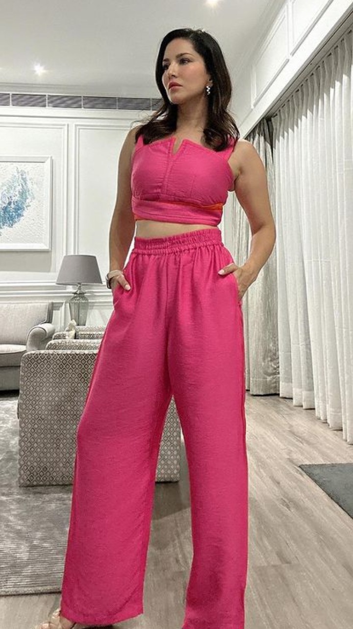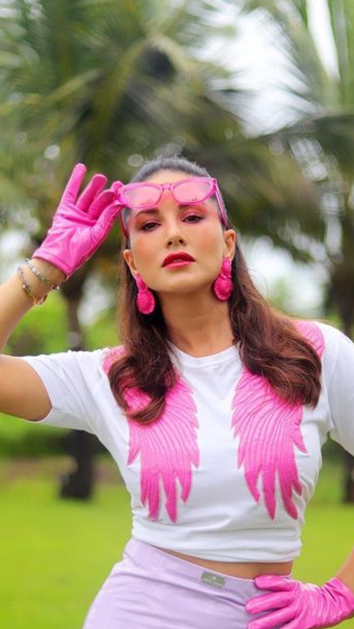 सोशल मीडिया पर सनी ने अपनी फोटोज शेयर की हैं, जिसमें उन्होंने पिंक कलर की ड्रेस पहनी हुई है।