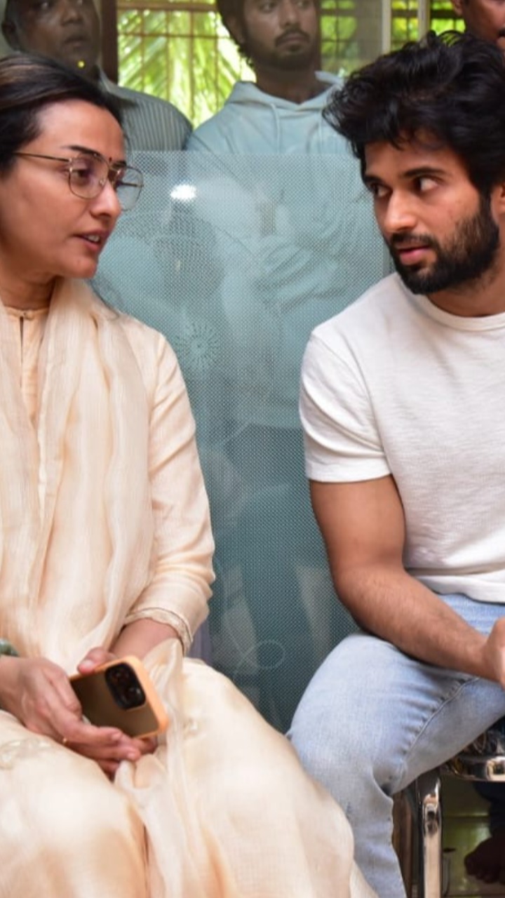 साउथ एक्टर विजय देवरकोंडा महेश बाबू के घर पहुंचे हैं। एक्टर को इस तस्वीर में महेश की वाइफ नम्रता शिरोडकर के साथ देखा जा सकता है।