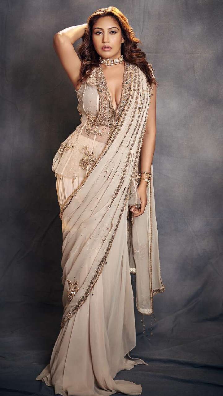 यंग गर्ल्स पार्टी-शादी में रॉयल लुक के साथ हैवी ब्रेस्ट को स्टाइलिश लुक देने के लिए एक्ट्रेस के इस ब्लेजर स्टाइल ब्लाउज को कैरी कर सकती हैं। इसका डिजाइन देखने में बेहद यूनिक लुक दे रहा है।