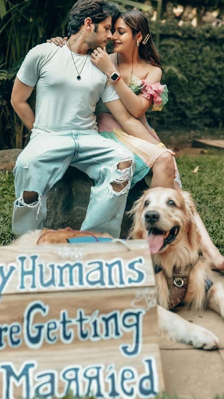 शादी की खबर का ऐलान सुरभि चंदना और करण शर्मा ने अपने क्यूट डॉग के साथ इस पोस्ट को शेयर कर की थी।