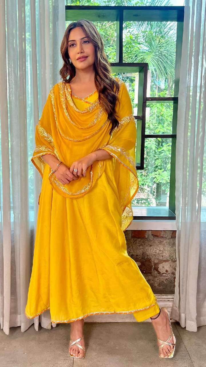 प्लेन येलो कलर के सूट में सुरभि काफी ज्यादा खूबसूरत लग रहीं हैं। ये लुक आप हर मौके पर कैरी कर सकती हैं।