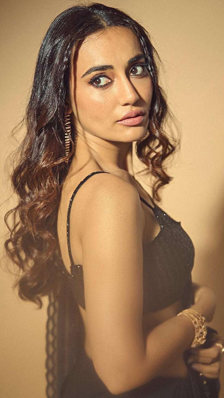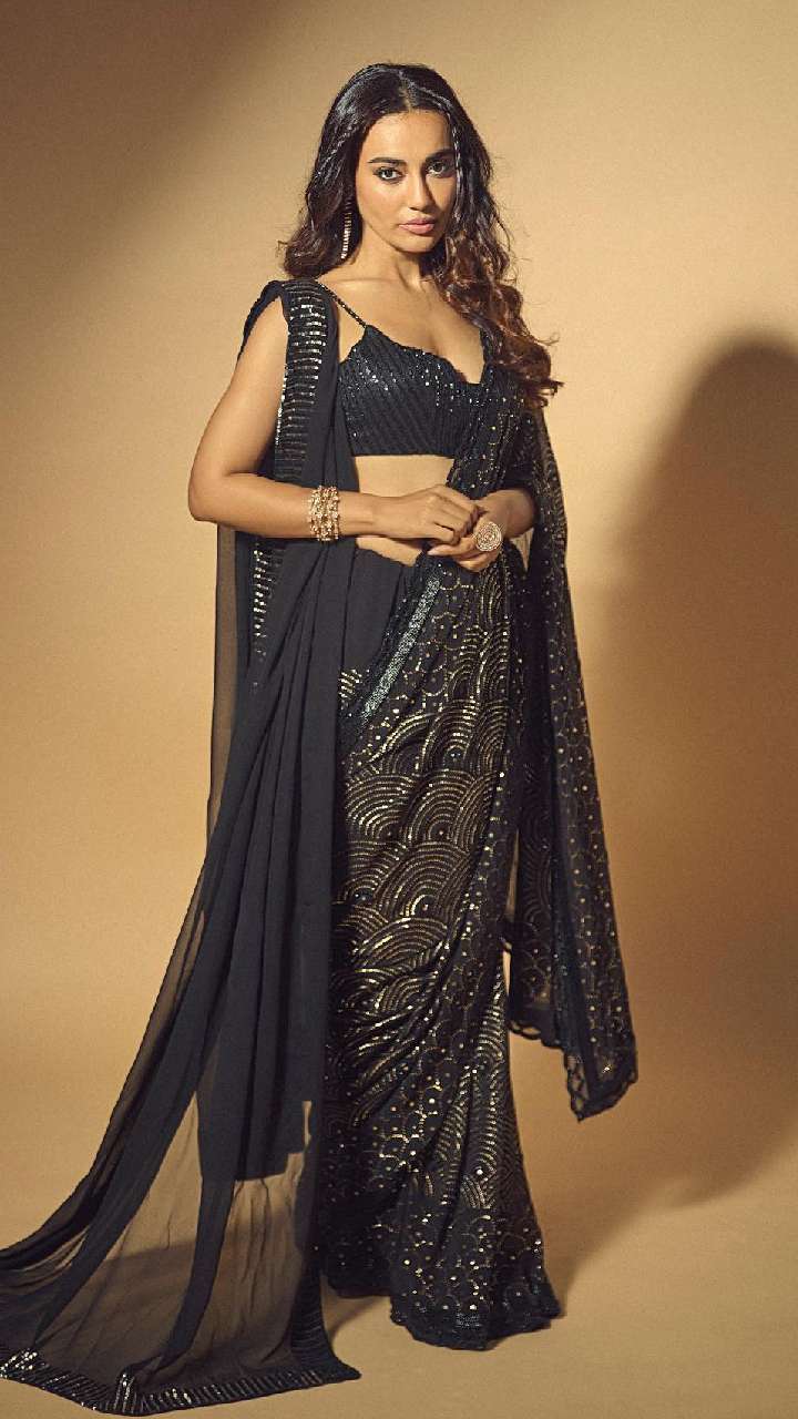 ब्लैक कलर की शिमरी साड़ी में भी सुरभि काफी ज्यादा हॉट लग रहीं हैं। एक्ट्रेस का ये लुक कॉकटेल पार्टी के लिए परफेक्ट है।