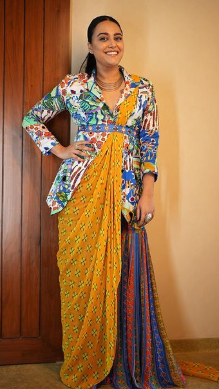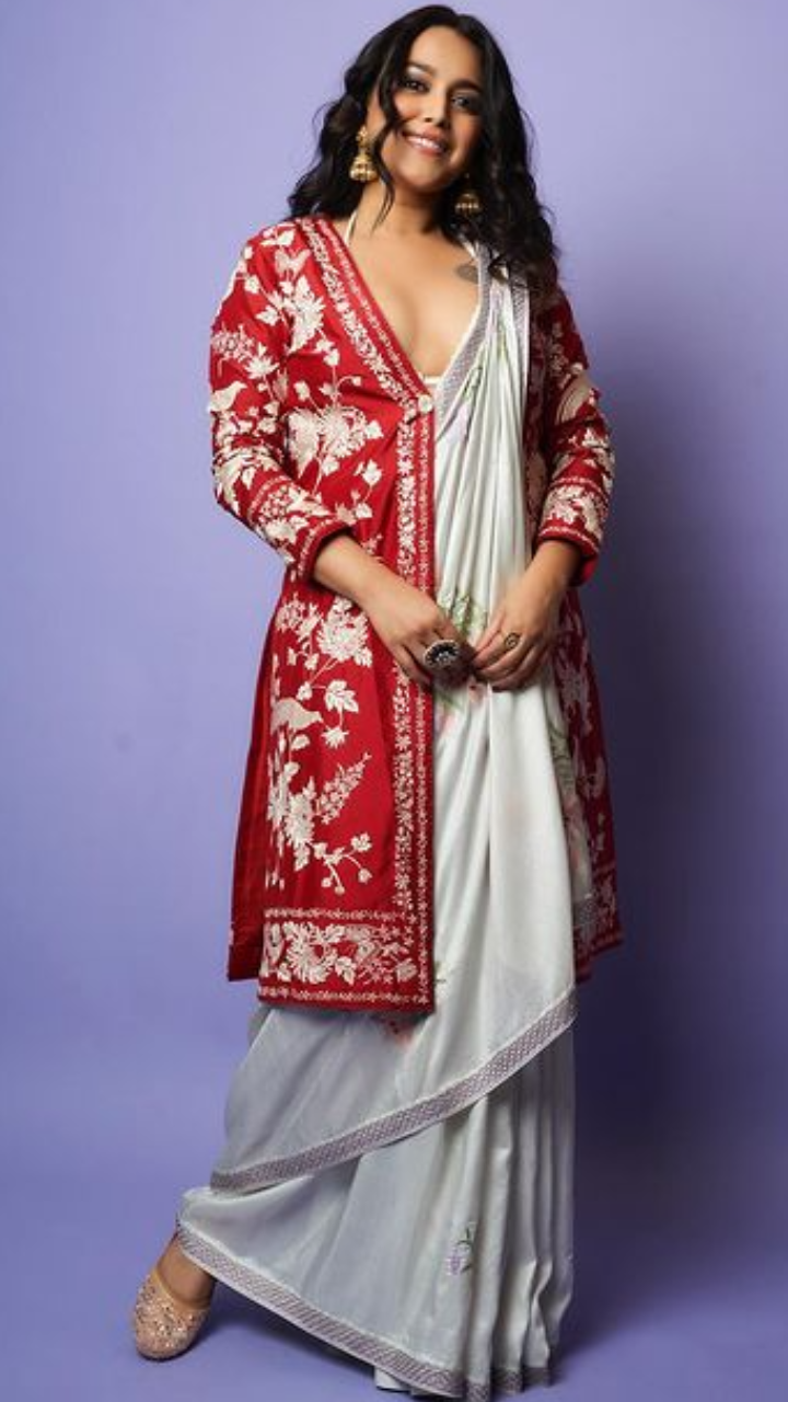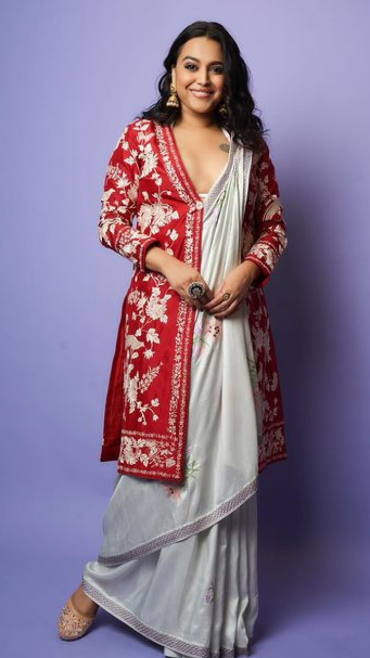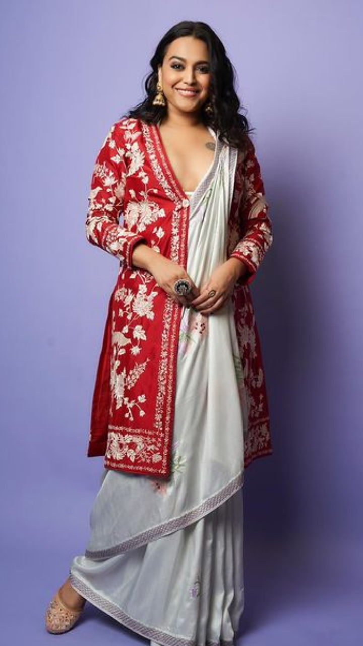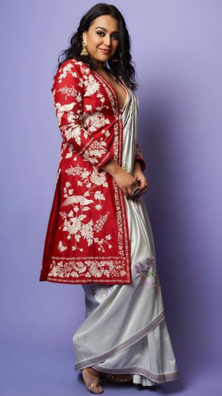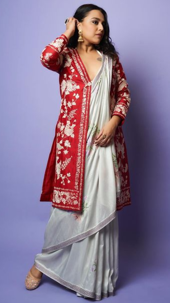स्वरा भास्कर डिजाइनिंग साड़ी में बेहद खूबसूरत दिख रही हैं।