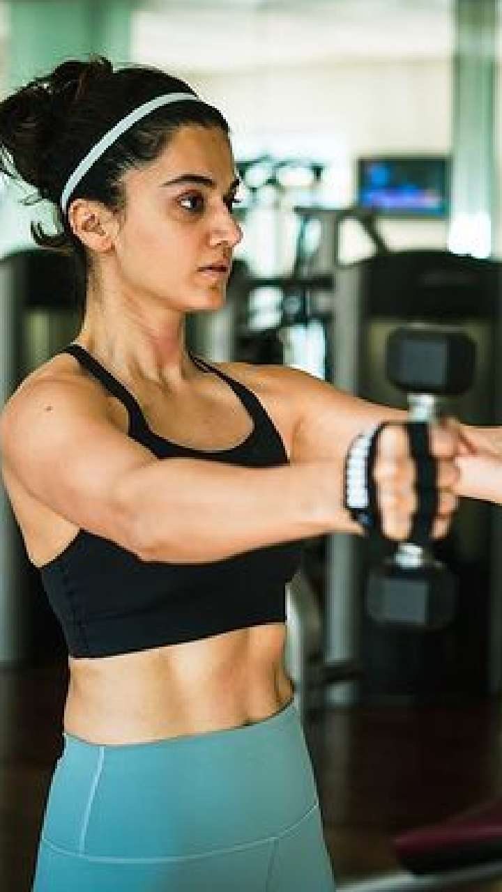 जिम में तापसी कार्डियो, वेट ट्रेनिंग, सर्किट ट्रेनिंग, हाई इंटेंसिटी इंटरवल ट्रेनिंग जैसे वर्कआउट करती हैं।