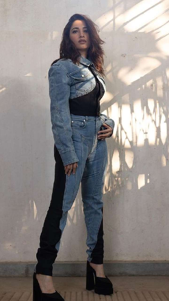 लेटेस्ट पोस्ट में एक्ट्रेस ने ब्लू और ब्लैक डेनिम का आउटफिट कैरी किया है, जो काफी डिफरेंट है।