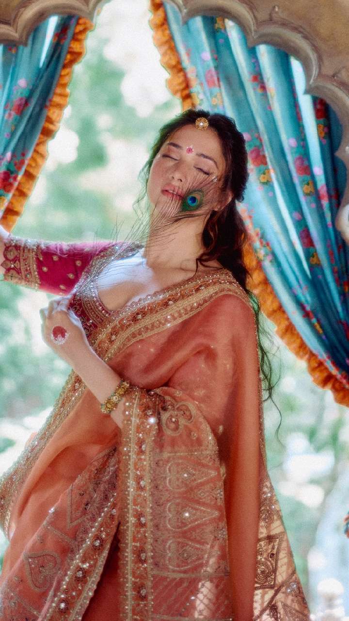 आप तमन्ना भाटिया की तरह ही फुल स्लीव्स ब्लाउज को भी साड़ी या फिर लहंगे के साथ पेयर कर सकती हैं।