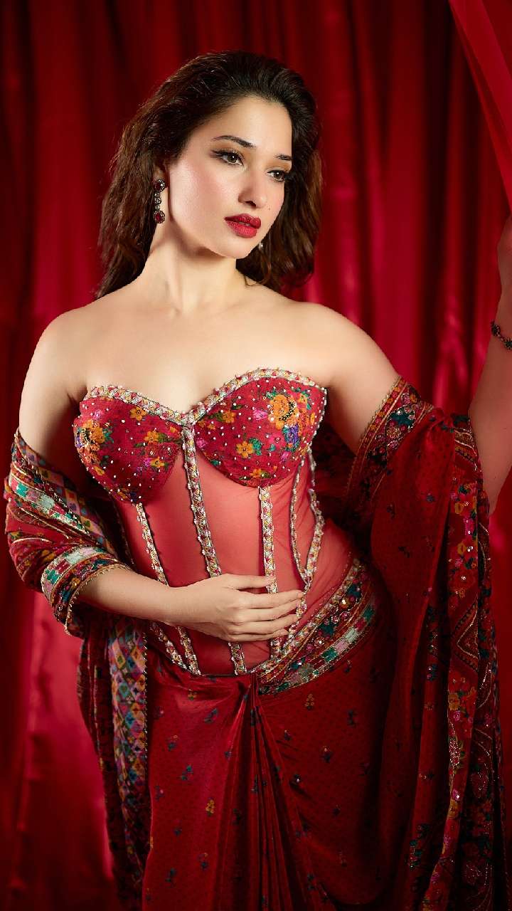 अगर आप मॉडर्न लुक कैरी करना चाहती हैं तो आप कोर्सेट ब्लाउज डिजाइन स्टाइल कर सकती हैं। रेड ब्लाउज में एक्ट्रेस का लुक शानदार लग रहा है।