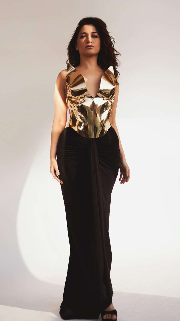 तमन्ना ने हाल में गोल्डन ब्लैक ट्यूब गाउन में अपना ग्लैमरस लुक शेयर किया है। जिसमें एक्ट्रेस काफी हॉट लग रही हैं।