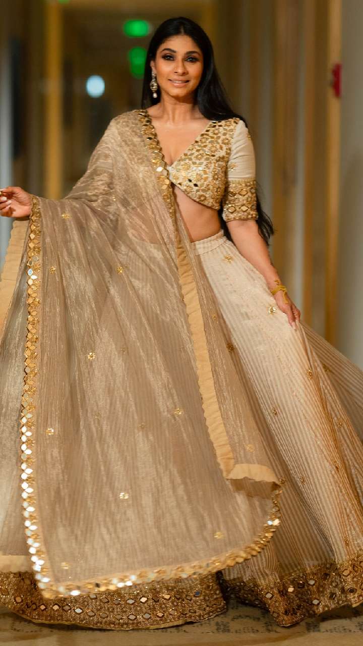 किसी खास मौके पर लहंगा पहनने का मन है और कुछ लाइटवेट ढूंढ रही हैं, तो एक्ट्रेस के इस लुक को रीक्रिएट कर सकती हैं। इसके साथ हैवी इयररिंग्स जरूर कैरी करें।