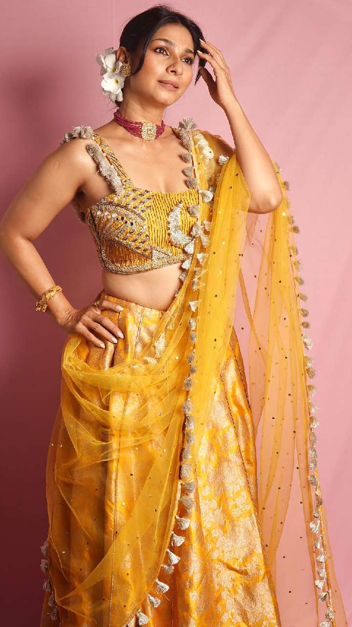 हाल में दुर्गा पूजा के मौके पर तनीषा ने येलो कलर के सिल्क लहंगे हेवी वर्क कट स्लीव्स चोली में अपना लेटेस्ट गॉर्जियस लुक इंस्टाग्राम पर शेयर किया था।
