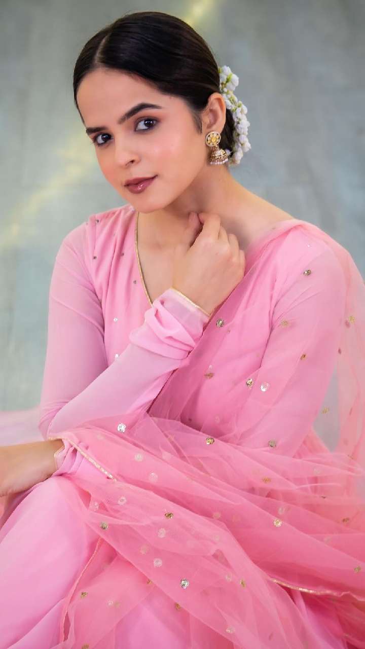पलक सिंधवानी का ब्रोकेड सूट बन हेयर स्टाइल और झुमकी लुक इफ्तार पार्टी के लिए एकदम परफेक्ट है।