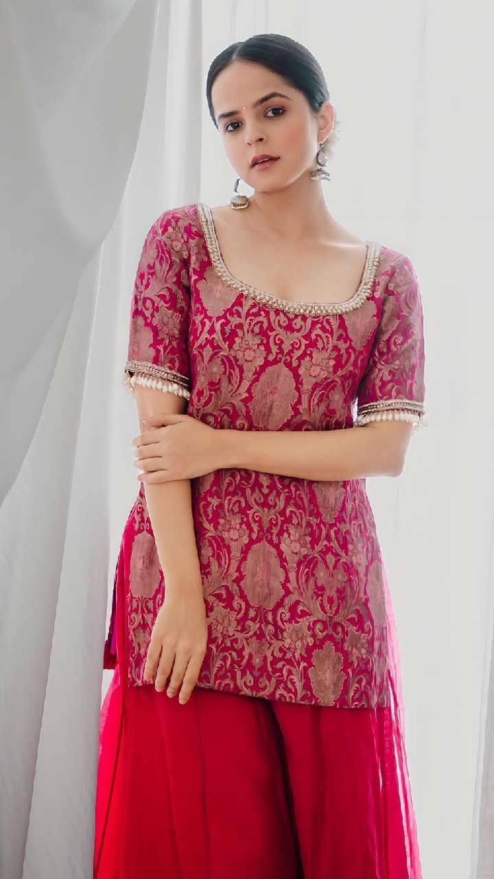 अभिनेत्री ने हाल में इंस्टाग्राम पर रेड कलर के स्ट्रैपी अनारकली सूट में अपना ग्लैमरस लुक शेयर किया है। सिंपल सोबर सूट के साथ उन्होने एम्ब्रॉयडरी वाला दुपट्टा पेयर किया है।