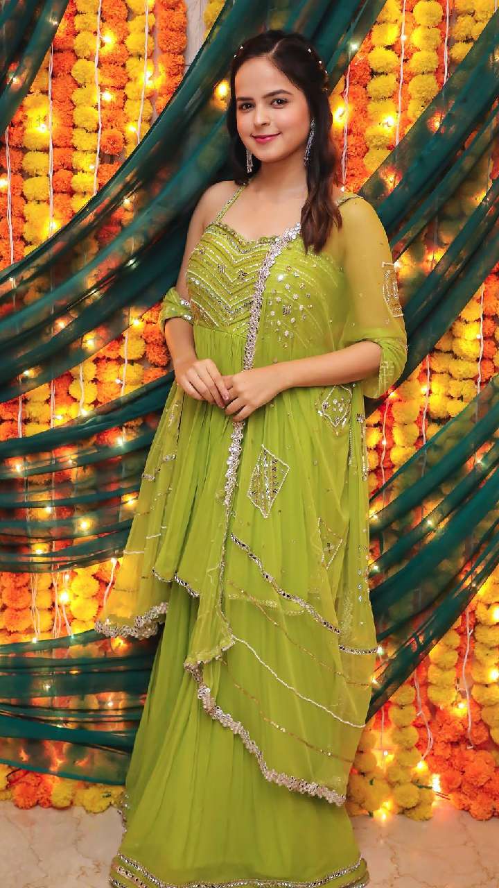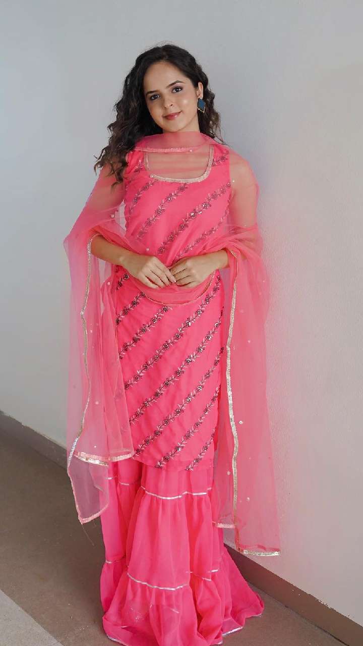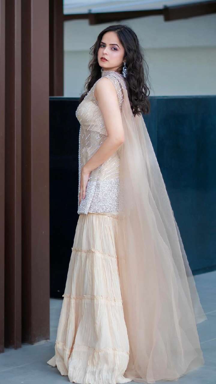 इफ्तार पार्टी के लिए पलक का नेटिड सिल्वर वर्क हैवी घेर शरारा सूट आपके लुक में चार चांद लगा देगा। इसके साथ एक्ट्रेस ने सिर्फ सिल्वर इयररिंग पहने हैं।