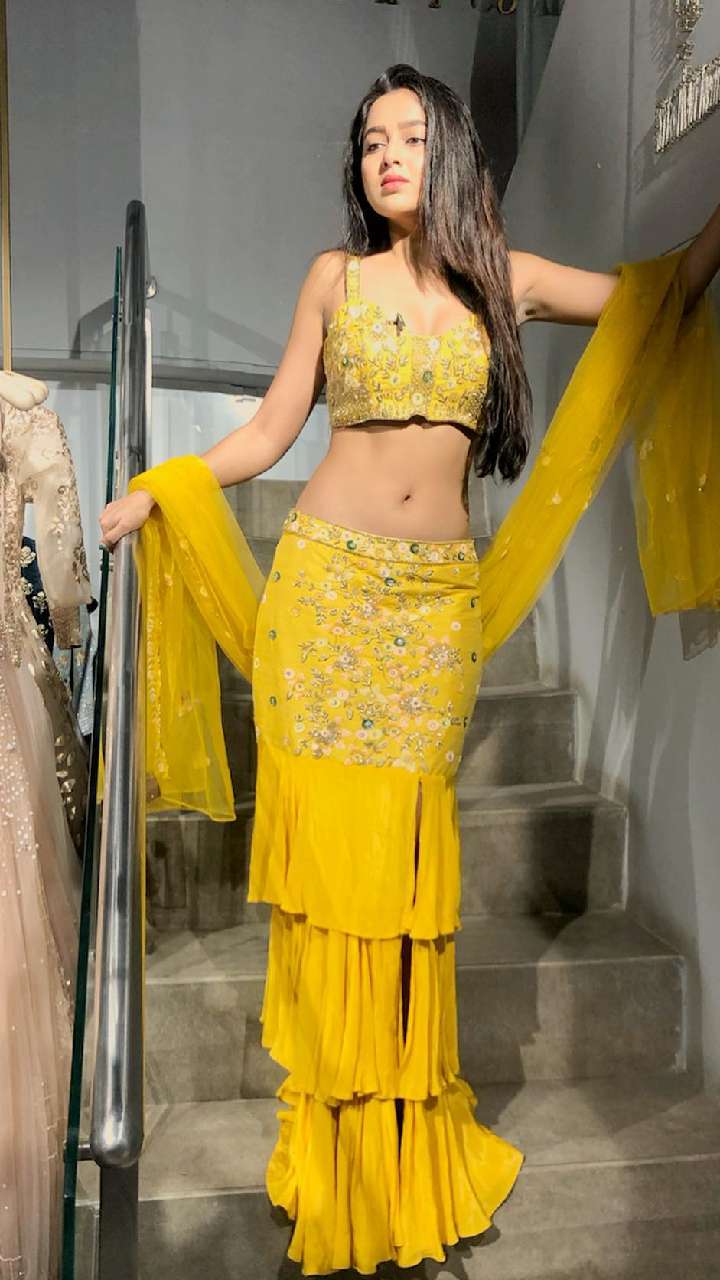 इस तरह के येलो बॉडीकॉन लहंगे यंग गर्ल्स पर काफी स्टाइलिश लुक देते हैं। ऐसे में आप इस लुक को कॉपी कर सकती हैं।