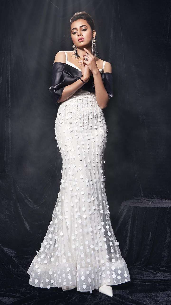 सिंगल शोल्डर सेटिन ड्रेस में तेजस्वी प्रकाश का ये लुक काबिले तारीफ है। एक्ट्रेस का हर लुक बेहद शानदार होता है।