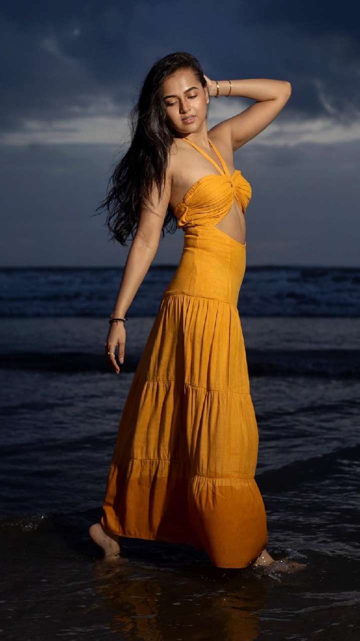 इस येलो ड्रेस में तेजस्वी अपना कर्वी फिगर फ्लॉन्ट करती नजर आ रही हैं। अगर आप भी अपना फिगर फ्लॉन्ट करना चाहती हैं तो इस तरह की ड्रेस कैरी करें।