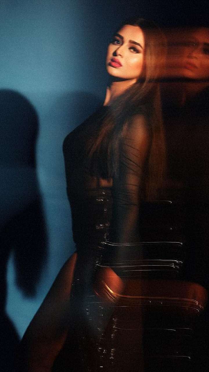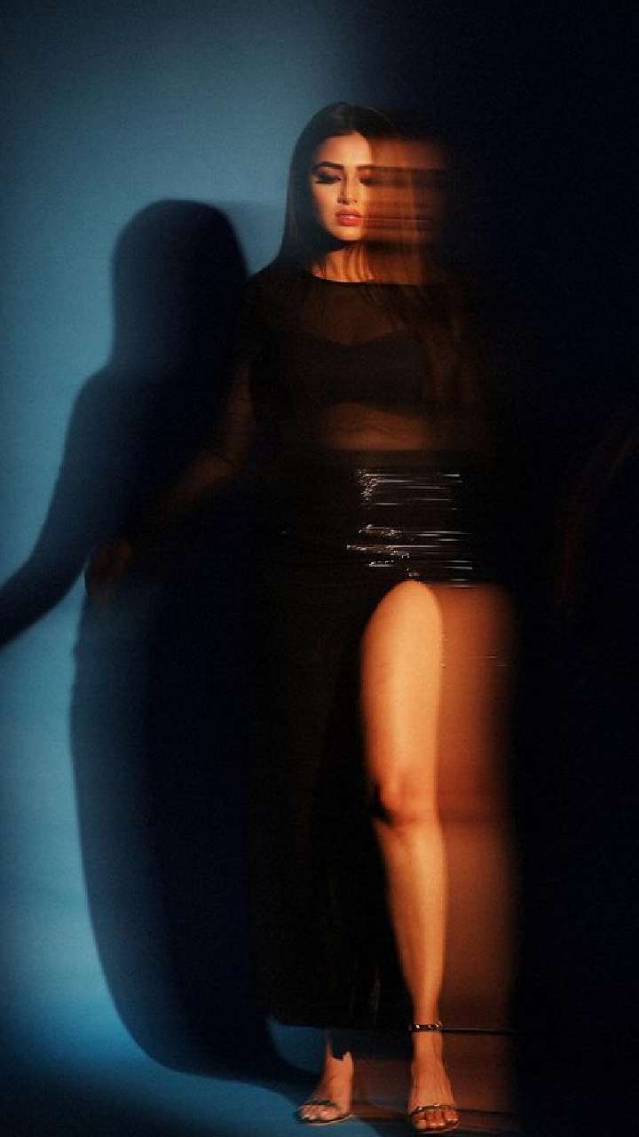 लेटेस्ट फोटोज में एक्ट्रेस ब्लैक थाई हाई स्लिट ड्रेस में नजर आ रहीं हैं, एक्ट्रेस का फुल ब्लैक लुक काफी क्लासी है।