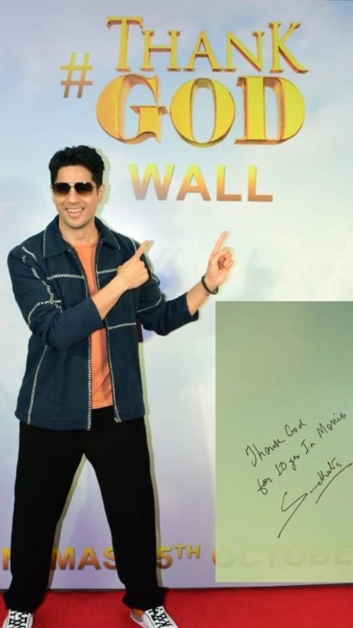 सिद्धार्थ मल्होत्रा ने भी थैंक गॉड वॉल पर भगवान को शुक्रिया करते हुए ‘थैंक गॉड फॉर 10 इयर्स इन मूवीज ’ लिखा हैं।
