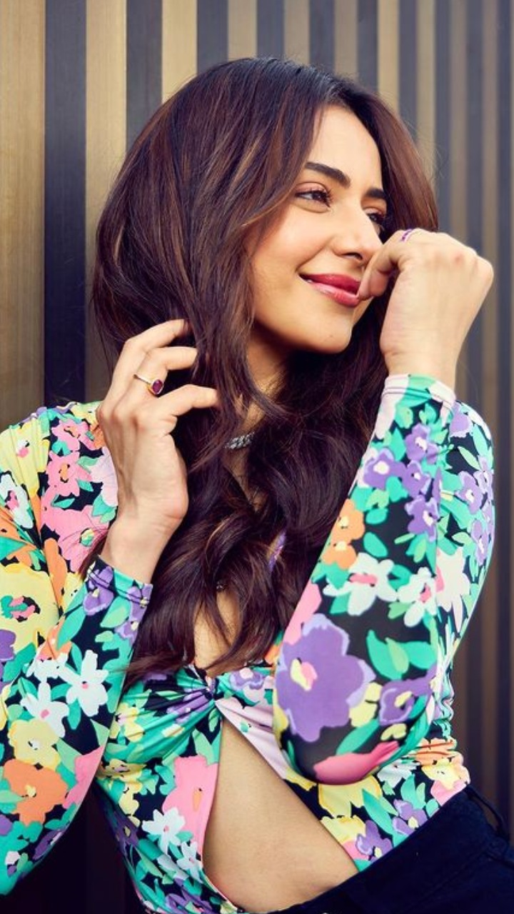 रकुल प्रीत जुल्फों को बिखेरती हुई क्यूटनेस से भरा पोज देती नजर आ रही हैं।
