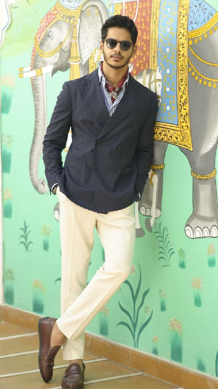 ब्लू कलर के ब्लेजर और पैंट में ईशान खट्टर काफी स्टनिंग लुक दे रहे हैं। इस तरह के आउटफिट क्लासी और फॉर्मल लुक देते हैं।